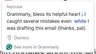 For example, it offered the suggestion below to rephrase a sentence within this email: